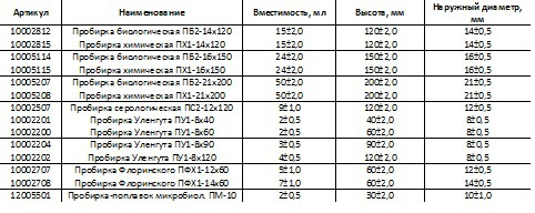 Пробирки конические центрифужныеРазработана для центрифугирования в центрифугах типа ОПн-3 и аналогичных им. Рассчитана на нагрузку до 1200 g. Диаметр 17±2,0мм.Пробирки конические центрифужные градуированныеГОСТ 1770-74